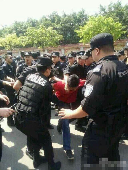 现场目击者称学生们推倒了校门,企图冲出去。他们在校门口和教学楼举牌及呼喊,并与前来执勤的特警发生冲突。